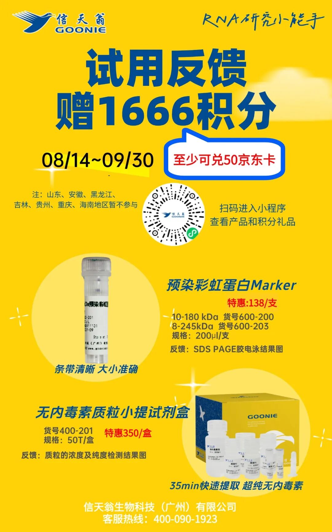 活动内容:蛋白marker、无内毒素质粒小提试剂盒,试用反馈送1666积分