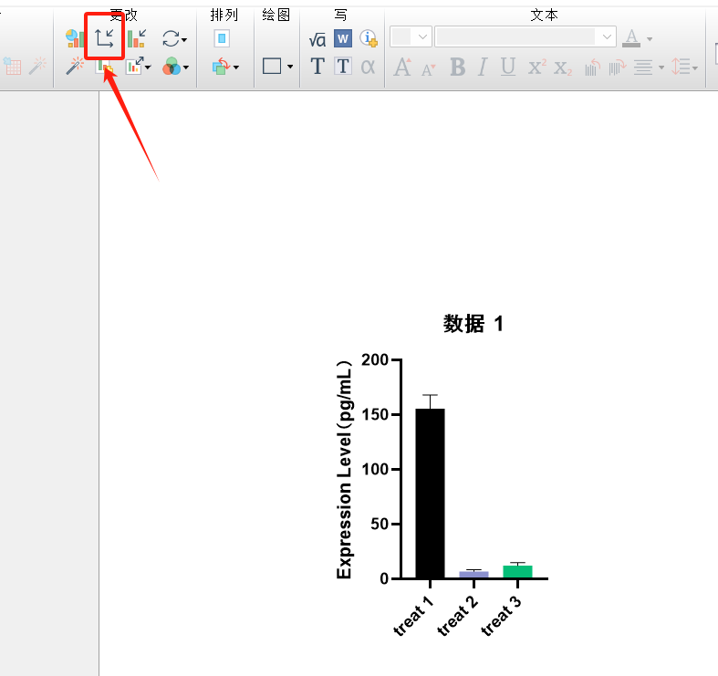 像上次笔记教的那样填完数据以后,点击图表。我们可以看到一个图表初始的样子,第二组和第三组的数据被压缩得很厉害。