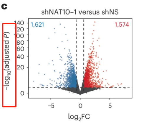 我们可以先看看这个Y坐标轴,写的是-log10(adjusted P)。P value假设检验中的重要指标,adjusted P则是校正后的P value,这主要在多重检验里出现。