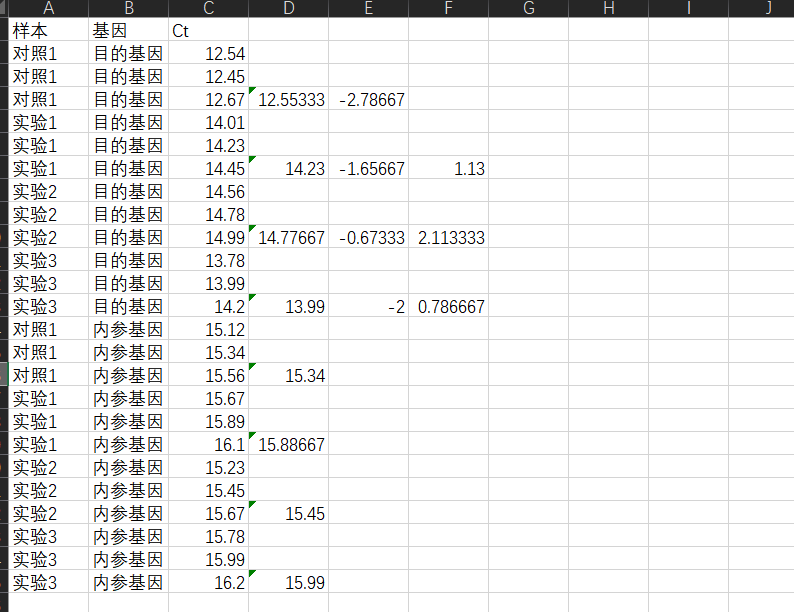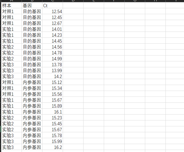 1.计算目的基因和内参基因的ΔCt值:ΔCt = Ct(目的基因) - Ct(内参基因)。
