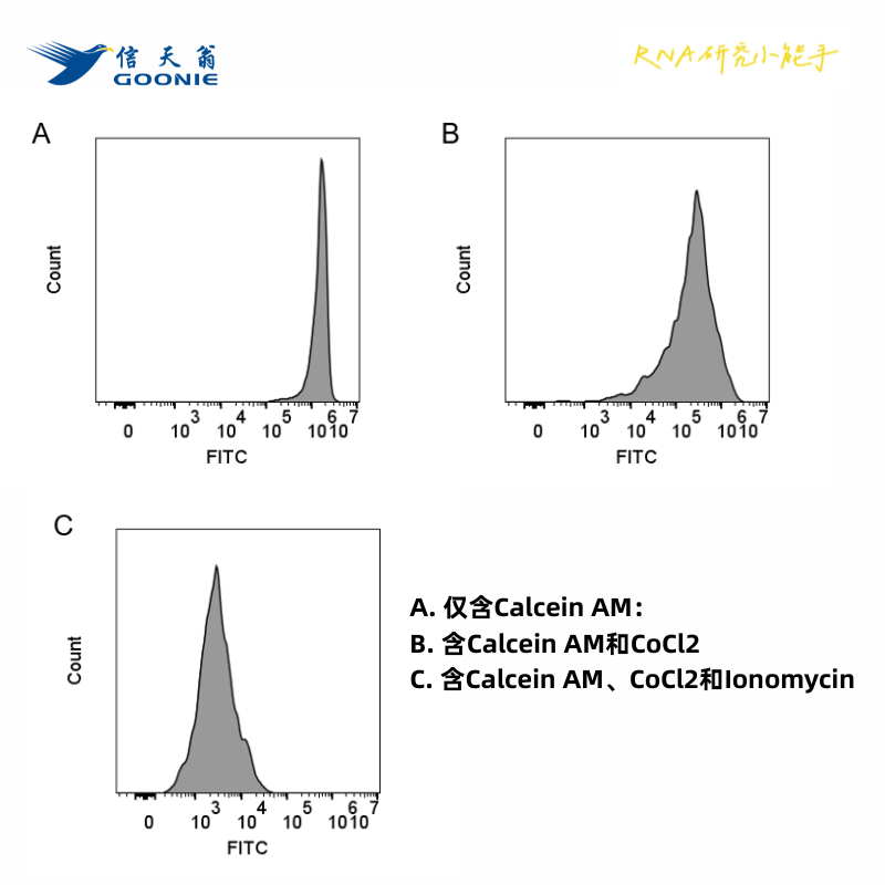 设置流式细胞仪的阴性对照时,需使用仅含检测缓冲液、且未经过染色处理的细胞样品作为对照。Calcein的最大激发光波长为494nm, 最大发射光波长为517nm。