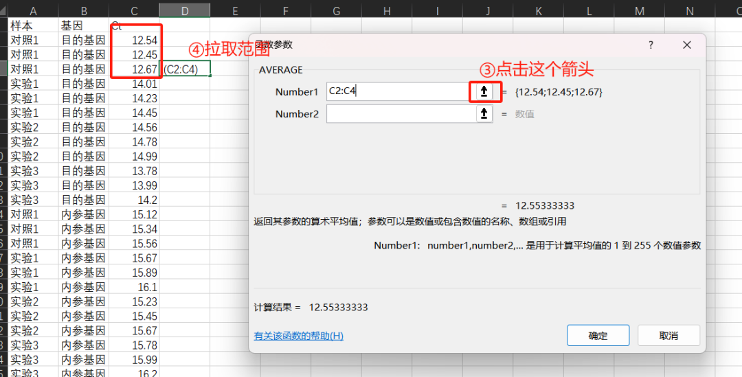 接下来我们用实验组的目的基因和内参基因的差值减去对照组的这个差值
