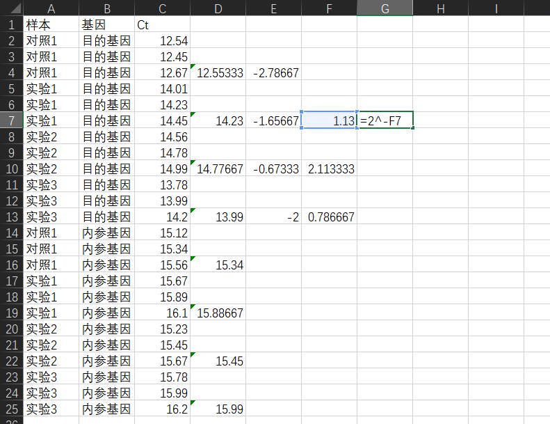 计算到这里,我们已经得到了△△Ct的值,然后就可以代入到公式 2^(-△△Ct)进行最后一步的计算。