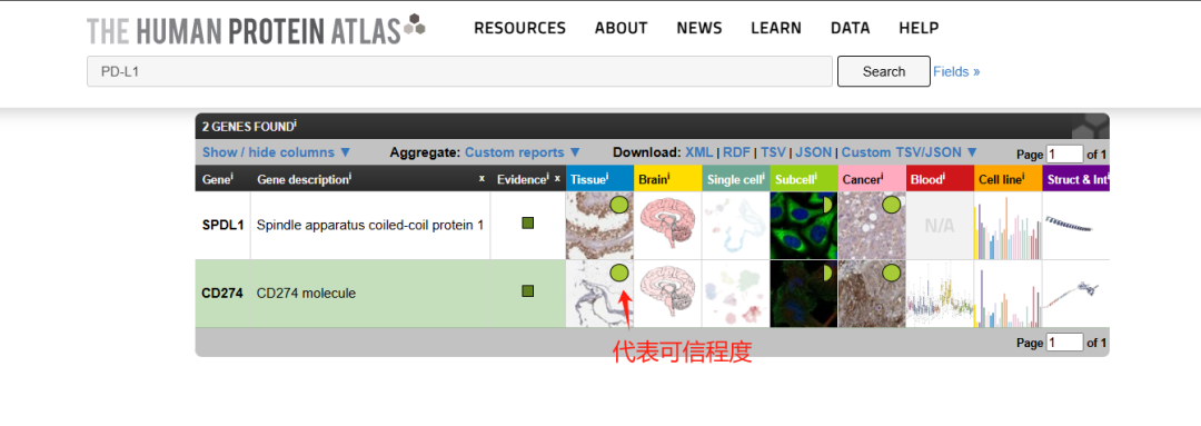 可以看到有的格子上面有绿色的半圆或者完整的圆形,圆形越完整,代表这个数据可信度越高。最可信是完整的圆形(enhanced),其次是3/4(supported),1/2(approved),1/4(uncertain)。