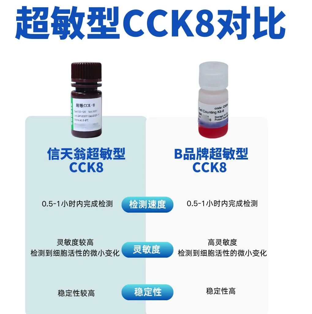 CCK-8(Cell Counting Kit-8)是一种基于WST-8的试剂盒,广泛应用于细胞增殖和细胞毒性的快速、高灵敏度检测。WST-8在电子耦合试剂存在的情况下,被线粒体内的脱氢酶还原生成高度水溶性的橙黄色甲臜产物(formazan),其颜色深浅与细胞的增殖成正比,与细胞毒性成反比。