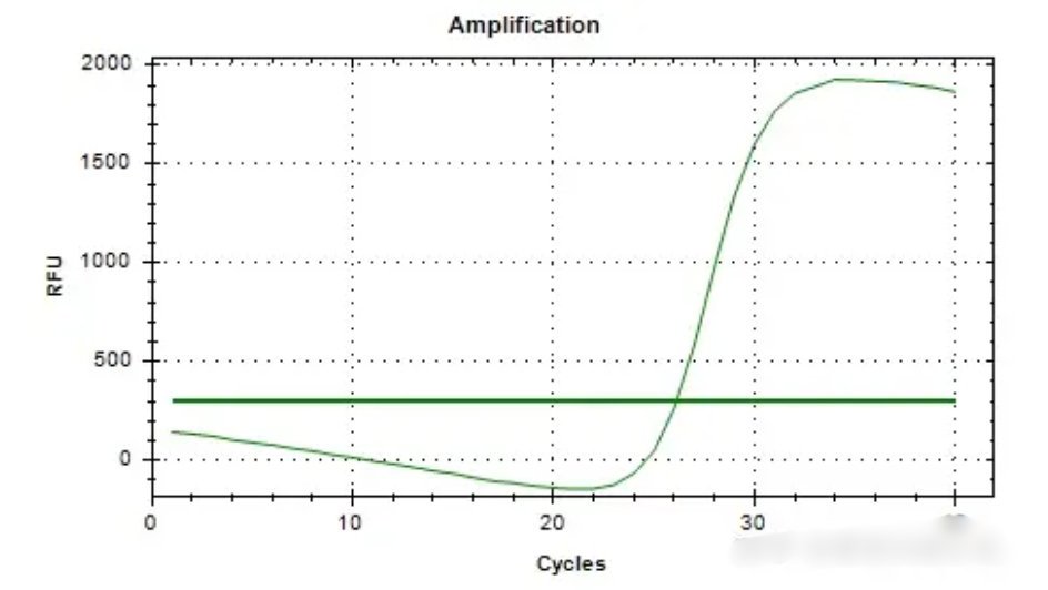 原因分析:基线范围选择不对,基线终点大于曲线对应的Ct值。